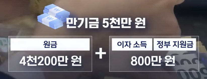 결국 매월 70만원을 냈다면, 60개월간 내가낸 돈 4200만원, 그리고 800만원은 정부의 지원을 받습니다.