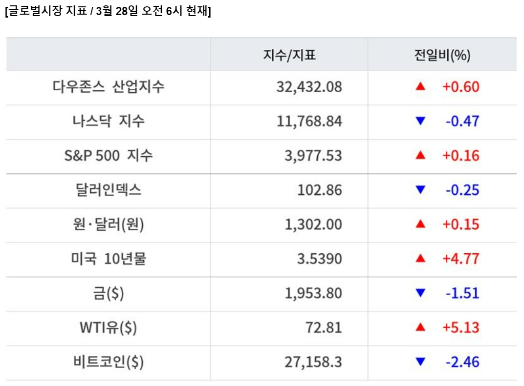 한국날짜 2023년 3월 28일, 현지날짜 3월 27일 뉴욕 증시 현황 간단 브리핑